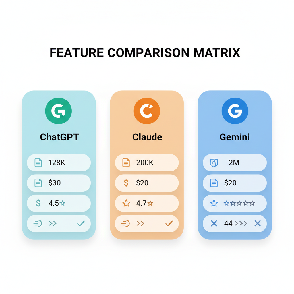 The AI landscape in 2026 is dominated by three powerhouses: OpenAI's ChatGPT (powered by GPT-4.5 and GPT-5), Anthropic's Claude (4.5 Opus and Sonnet), and Google's Gemini (2.5 Ultra and Pro). Each brings unique strengths, pricing models, and optimal use cases.