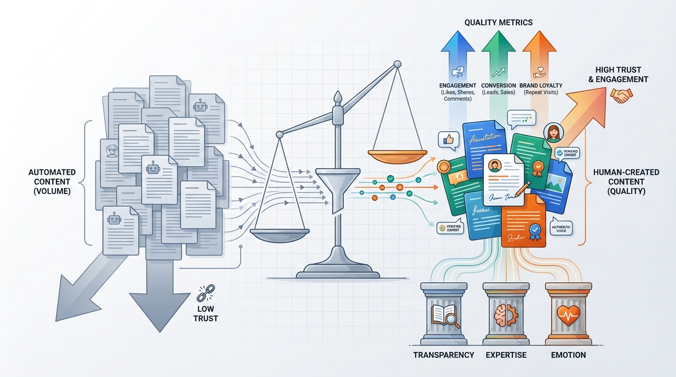 The fundamental question facing content marketers in 2026: Should you optimize for volume or authenticity?