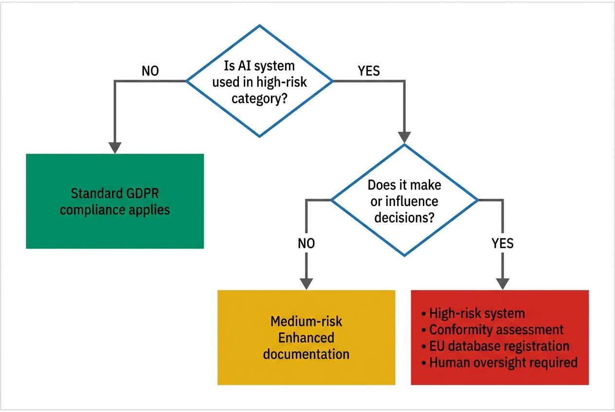 Critical note: Even if not high-risk under EU AI Act, GDPR Article 22 prohibits automated decision-making with legal/significant effects without explicit consent or contractual necessity.