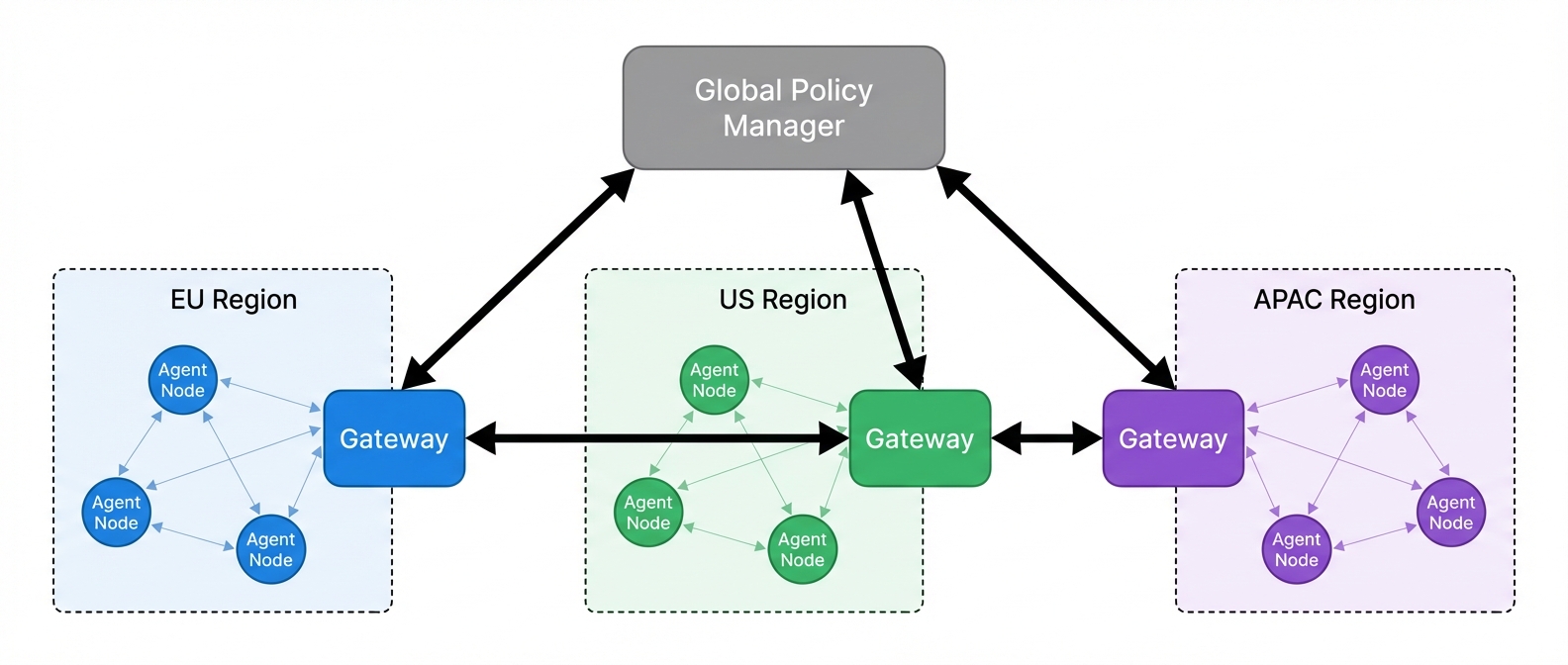 - Federated learning across agents: Agents improve through shared learning without centralized training