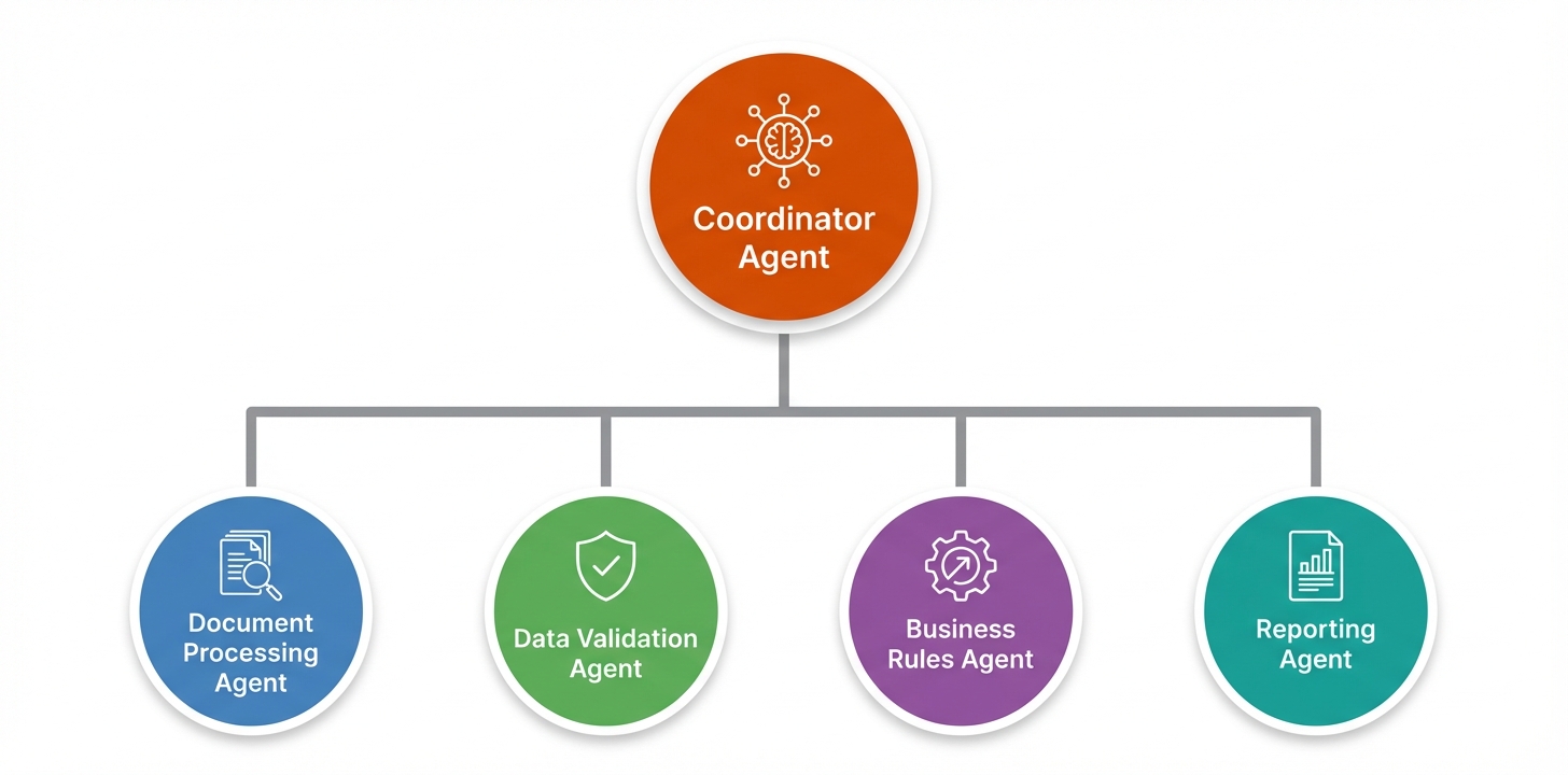 Real-world impact: A Fortune 500 retailer found their single-agent invoice processing system took 47 minutes on average because document extraction, validation, approval routing, and payment scheduling ran sequentially.